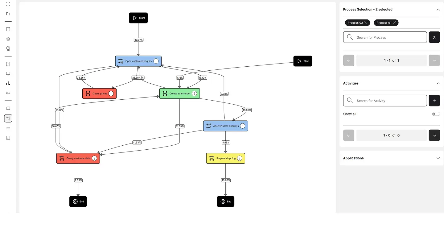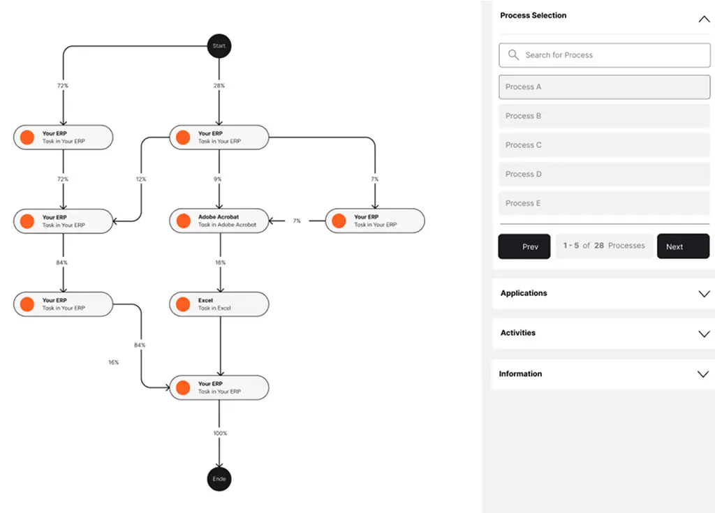 With full transparency, you can spot bottlenecks, inefficiencies, and automation potential — all backed by real data. Paxray helps you reduce manual work, deploy RPA bots, or redesign workflows by showing what to fix first and how to measure impact. You can also track specific objects — like order numbers or case IDs — across systems to see where they slow down or go wrong.