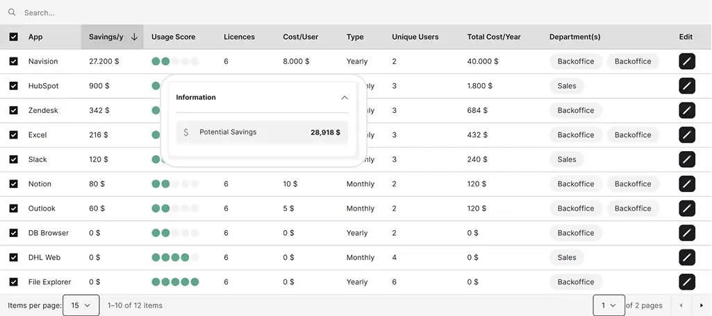 Get an accurate overview of your IT system landscape. See at a glance which software applications are in use, how often they are used and how tools are linked to each other.